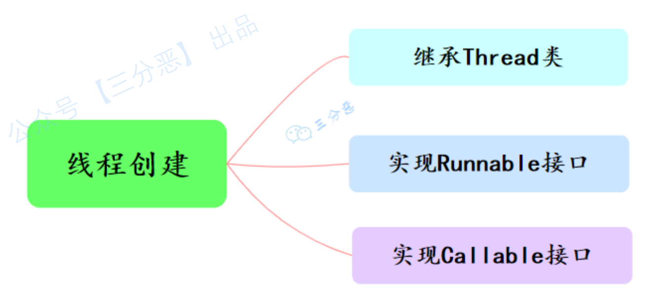 Java中创建线程主要有三种方式,分别为继承Thread类、实现Runnable接口、实现Callable接口。
